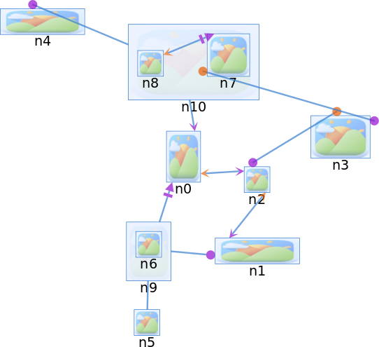Port constraints are associated with edges and can have two port constraints defined on each of its endpoints. When an edge endpoint does not have a specified port constraint, it is assumed that it connects to the center of the source/target node (the edge is typically rendered w.r.t. to the source/target node shape’s boundaries however).